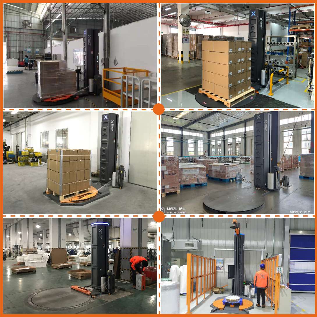 小黃蜂自動(dòng)預(yù)拉式纏繞膜機(jī)X1,堆放在托盤(pán)上的貨物進(jìn)行纏繞包裝,使被包裝物更加穩(wěn)固和整潔,